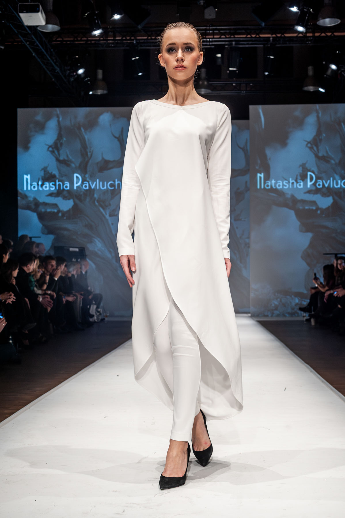 Klare Linien, präzise Formen – Natascha Pavluchenko verbindet technische Raffinesse mit sinnlicher Eleganz. Die Serie zeigt Mode als architektonisches Spiel aus Stoff, Licht und Bewegung, reduziert und kraftvoll zugleich.