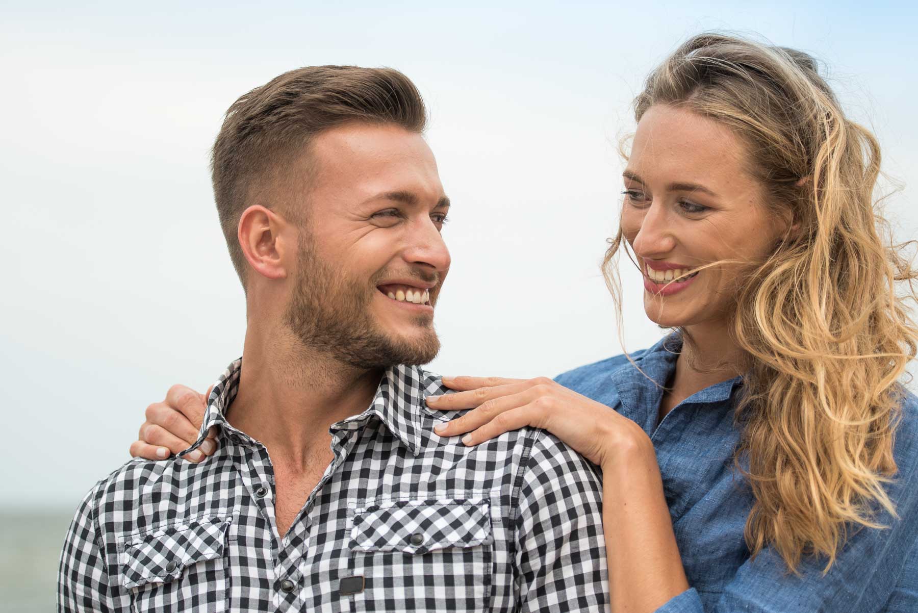Zwei Menschen, Meer, Wind – und dieser eine Moment, der alles sagt. Zwischen Lachen und Nähe entstehen Aufnahmen voller Gefühl und Leichtigkeit. Kein gestelltes Posing, sondern echte Verbundenheit – getragen von Vertrauen, Bewegung und der Freiheit des Augenblicks.